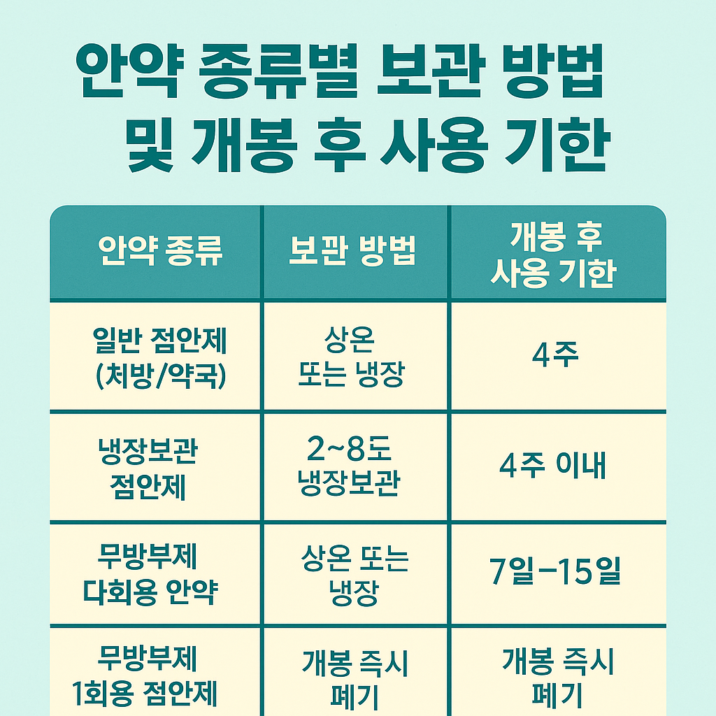 📋 안약 종류별 보관 및 사용 기한 요약표