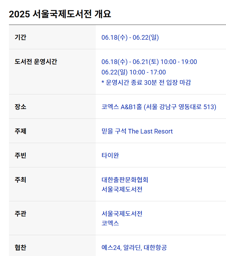 | 행사명 | 2025 서울국제도서전 (Seoul International Book Fair) |